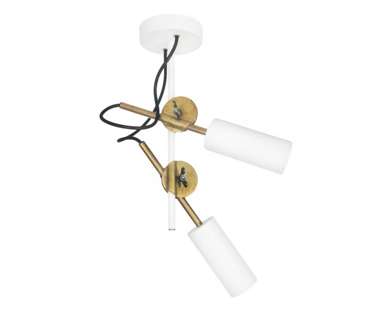 Stav fra Konsthantverk er en moderne lampe med et retro udtryk. Lampens rå messingdetaljer skaber en fin kontrast til den matte hvide eller sorte skærm.