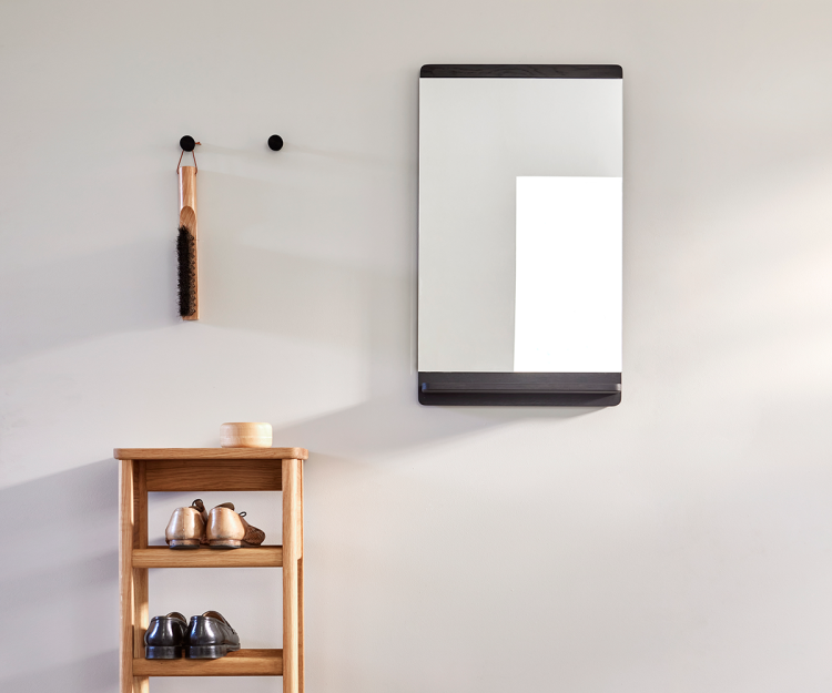 Rim Wall Mirror er et elegant vægspejl med en praktisk hylde, hvor man kan stille og opbevare smykker eller små ting. Spejlet er lavet af europæisk træ, og vil passe flot ind i mange hjem. Brug det bl.a. i badeværelset, entreen eller i soveværelset.