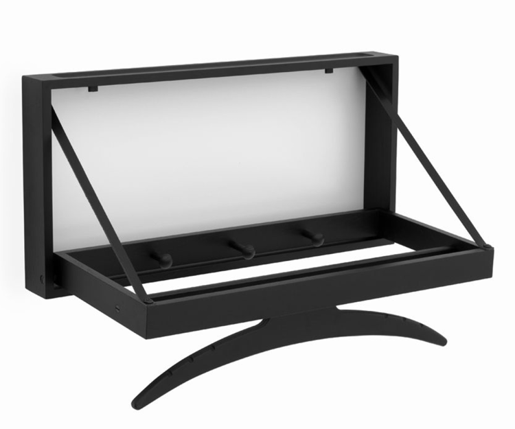 The Hanger eller blev designet af Adam Hoff & Poul Østergaard i 1964 og er deres mest anerkendte design. Når ydersiden foldes ned kommer en bøjle og knagerække til syne hvor jakke og andre tøjeffekter kan hænges. Entrémøblet skaber liv til rummet på en helt unik og original måde. The Hanger er et skulpturelt stykke interiør med en funktionel gennemtænkthed og rammen kan bestilles i en række forskellige varianter som giver helt særprægede udtryk. Vælg rammen i sæbebehandlet,sortbejset, oliebehandlet eller røget eg, og vælg derefter om baggrunden skal være gråblå, matsort eller mathvid.