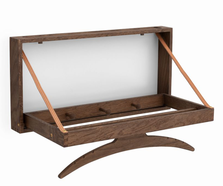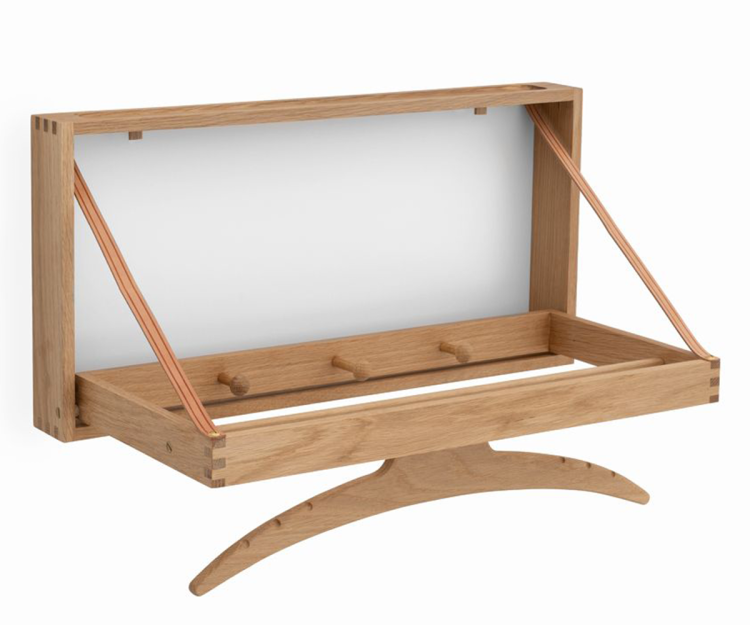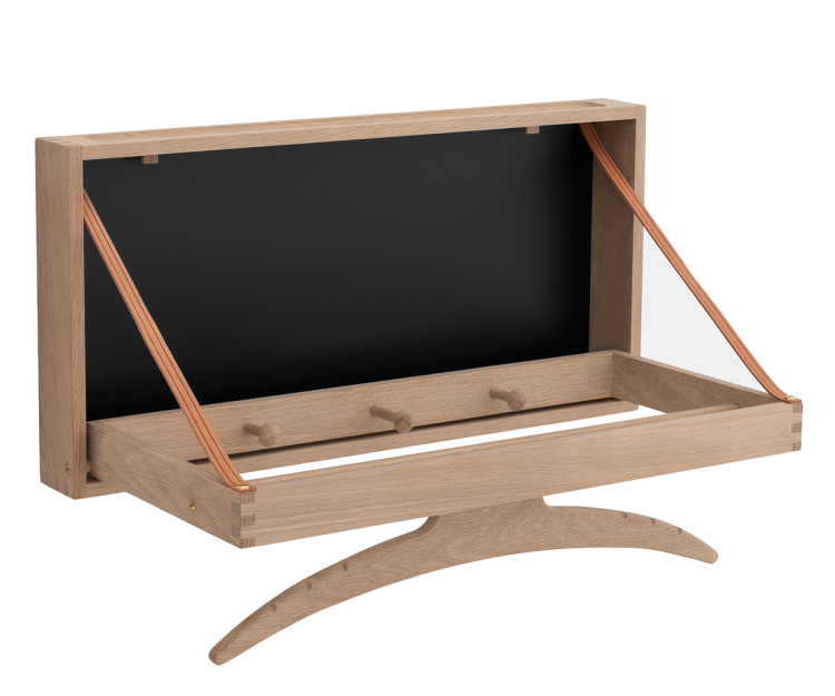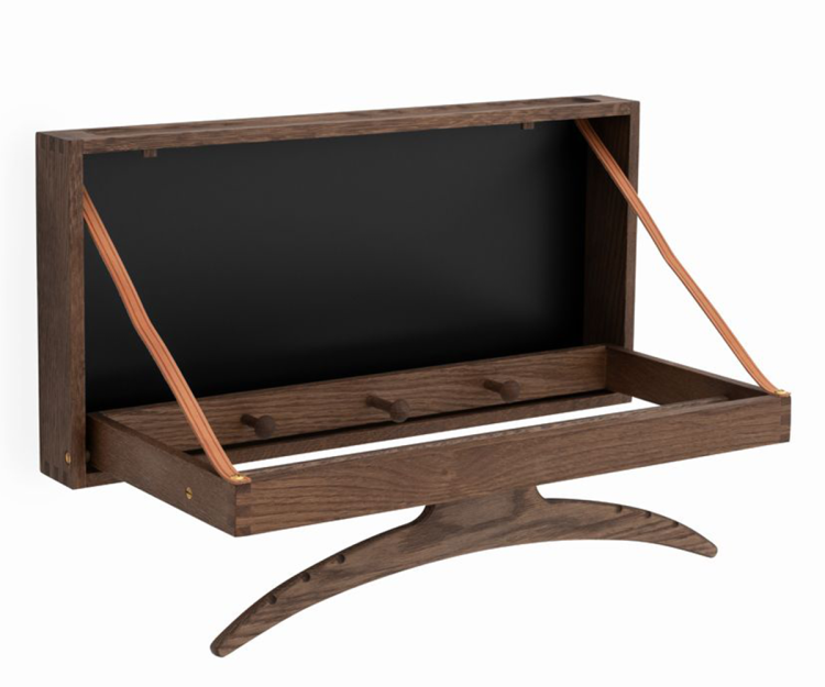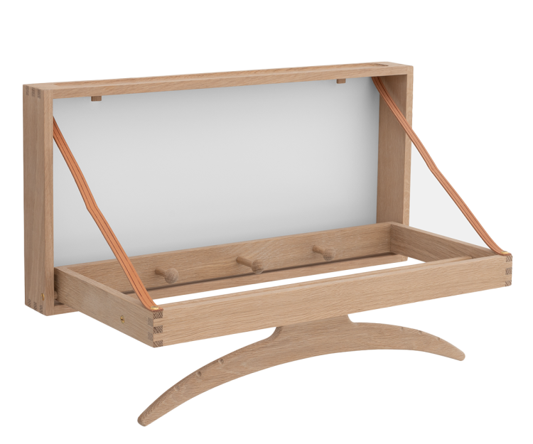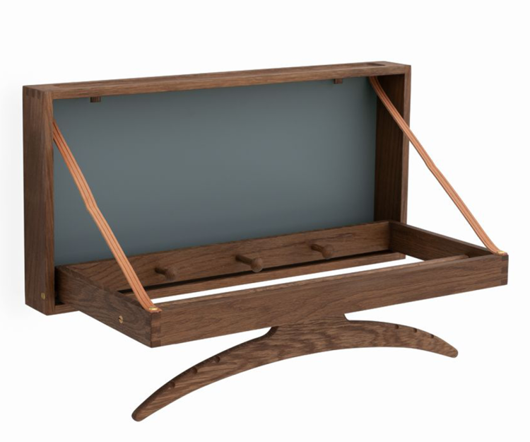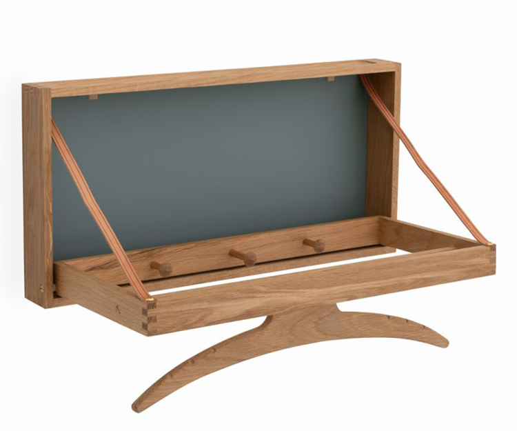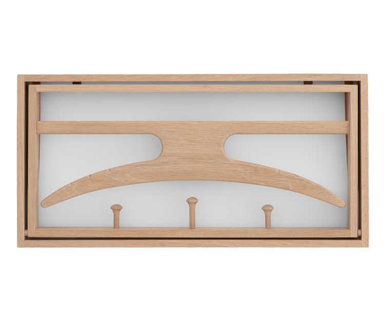 Adam Hoff & Poul Østergaard skabte The Hanger med fokus på ægte kvalitetshåndværk, hvor naturlige råvarer som den solide egeramme dominerer møblets stilsikre udtryk.  Hængeren er en form for væghængt stumtjener af helt unik originalitet og med den rette pleje kan møblet glæde familier gennem flere generationer.