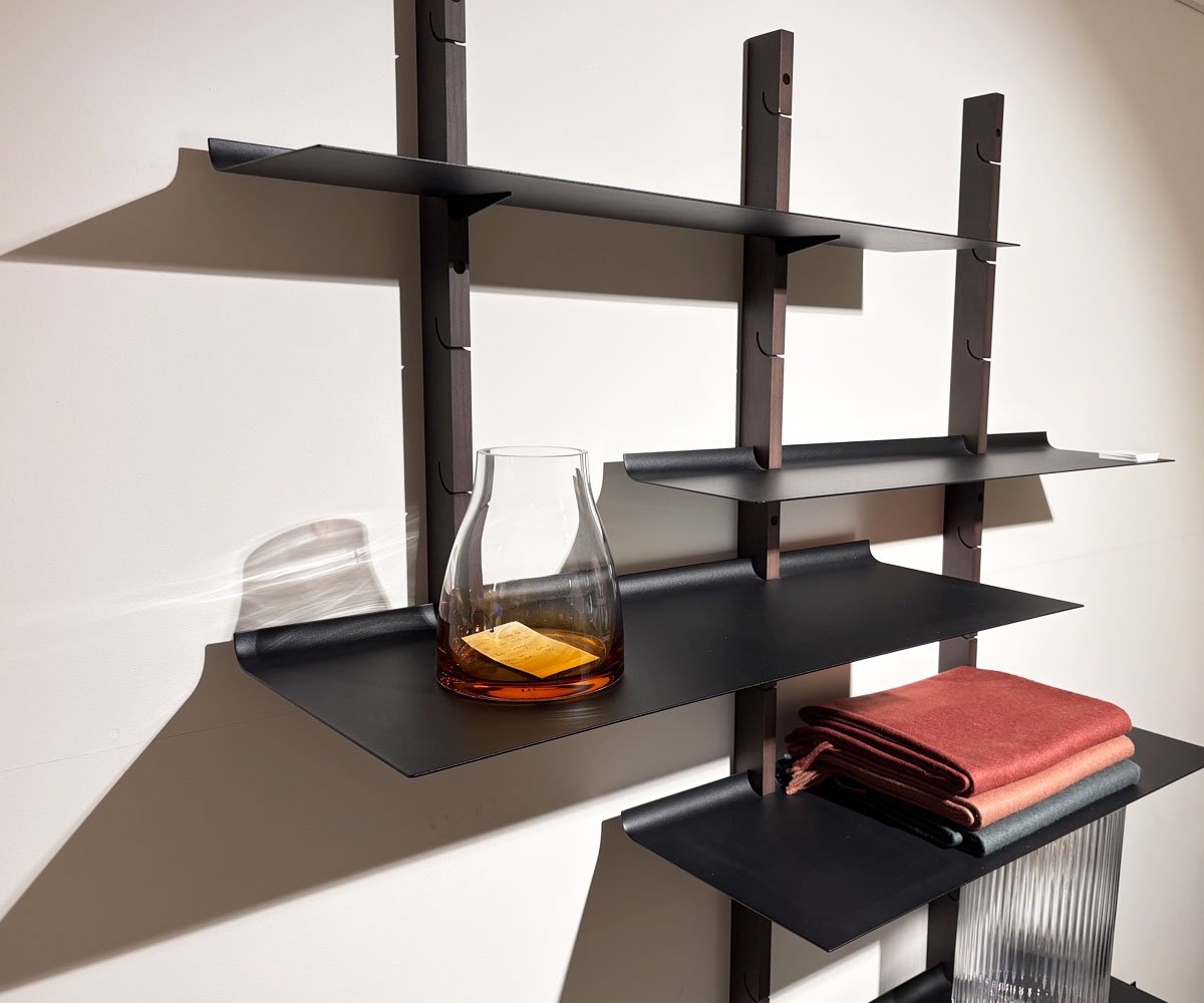 Smile reolsystem er fleksible hylder på væggen. Et reolsystem, som både er fleksibelt og simpelt i sin funktion, fordi man selv kan flytte rundt på reolens hylder. Smile består af flytbare hylder samt trævanger, der monteres på væggen. Det er de solide vanger i egetræ, som har givet Smile sit navn. Trævangerne er nemlig udstyret med en slids, der minder om et smil, og som passer til hyldernes buede bagkant. Når hylderne er skubbet ind i trævangerne, hænger de af sig selv og man kan nemt flytte rundt på dem i reolen, hvis man ønsker det. Den buede bagkant på hylderne sikrer også at bøger og andre ting, ikke skraber mod væggen. På grund af geometrien mellem slids og hylde, behøver man hverken ekstra beslag eller stifter, når hylderne flyttes rundt. Hvis ens behov ændrer sig, kan man bygge videre på sit Smile reolsystem ved at tilkøbe ekstra dele.