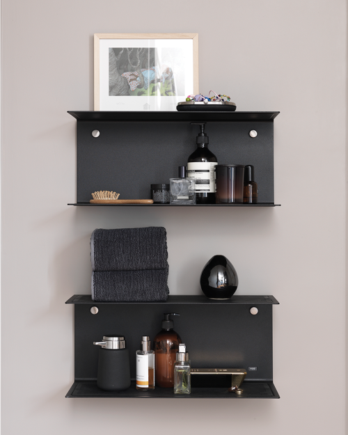 Vipp hylden tilfører en enkel opbevaringsløsning til alle hjemmets rum. Det u-formede design kombineret med det usynlige vægbeslag giver hylden et let og svævende udtryk. De fikserende tommeskruer i børstet, rustfrit stål udgør en underspillet detalje.