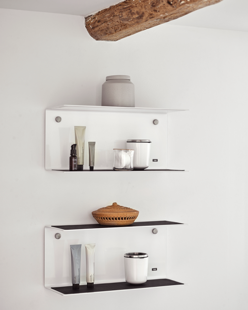 Vipp 921 er den mindste af to størrelser Vipp hylder. Med de to overflader udgør Vipp hylden en funktionel opbevaringsløsning for ethvert rum i hjemmet. En fordybning i de to overflader bærer en silikonemåtte, der beskytter sarte overflader.