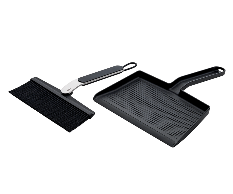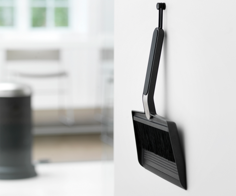 Vipp 274 kost og fejebakkesættet er et smart værktøj til køkkenet mv. Kosten fejer let krummer, støv osv. fra gulvet op på den vinklede fejebakke, der kan stå selv. Kost og fejebakkesættet kan samles og hænges op på en krog med den integrerede strop.