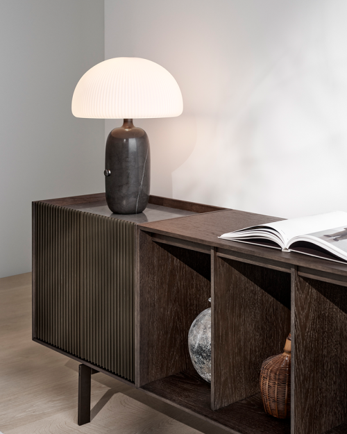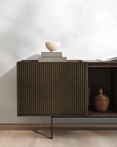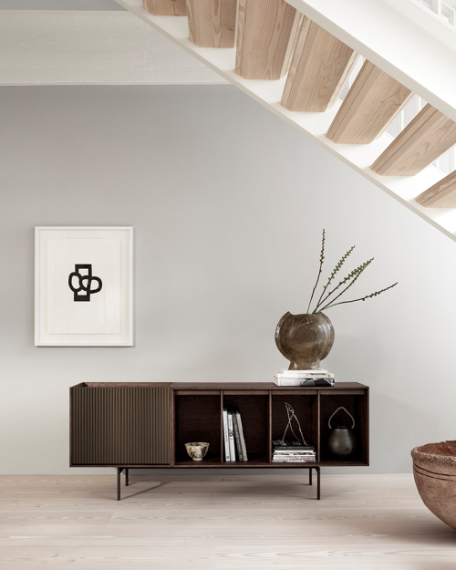 Chimney-kabinettet er udformet med tanke på funktionalitet, der stadig skal være en smuk genstand i sig selv. Det er skræddersyet til at kunne placeres bag Vipp-sofaerne, men fungerer også perfekt for sig selv som tv-bord, rumdeler eller noget helt tredje