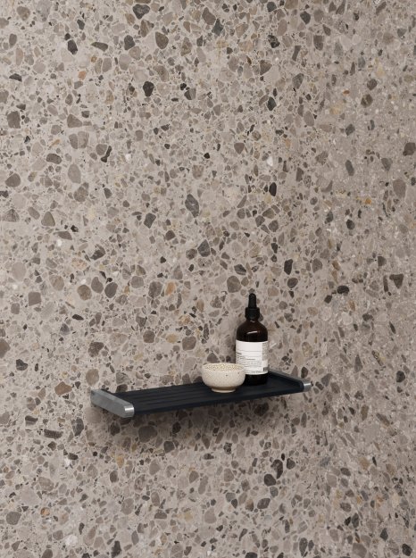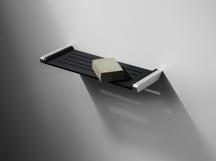 Badeværelseshylden har en aftagelig silikoneindsats som gør hylden let at rengøre.