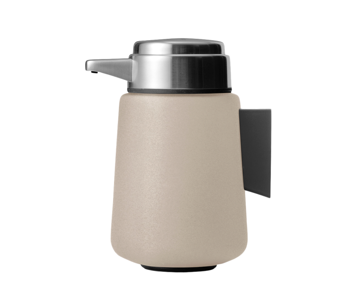 Dispenseren kan også med fordel benyttes til håndsprit, da den solide base giver Vipp dispenseren stabilitet til at kunne betjenes med én hånd.