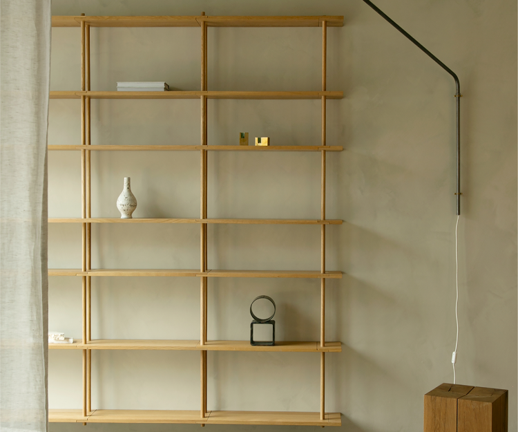 Bond er et klassisk let design med værktøjsfri samling. Bond reolen kan vægmonteres, være fritstående eller hænges fra loftet. Dens bygbare natur betyder, at du kan starte i det små og tilføje flere hylder over tid -  sæt blot nye moduler på plads, når du er klar.
