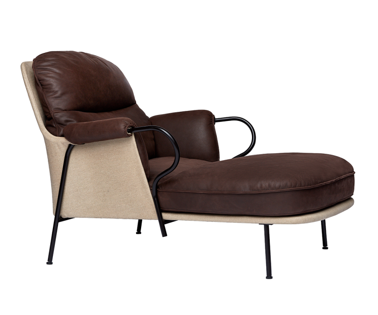 Metalrammen på Lyra stolen er pakket ind i lærred, som skaber en letvægtsstruktur, der er nem at flytte og giver mulighed for afslapning og komfort alene eller sammen med en tæt på. Med et distinkt udseende og en enestående komfort vil denne chaiselong hurtigt blive en favoritlounge.