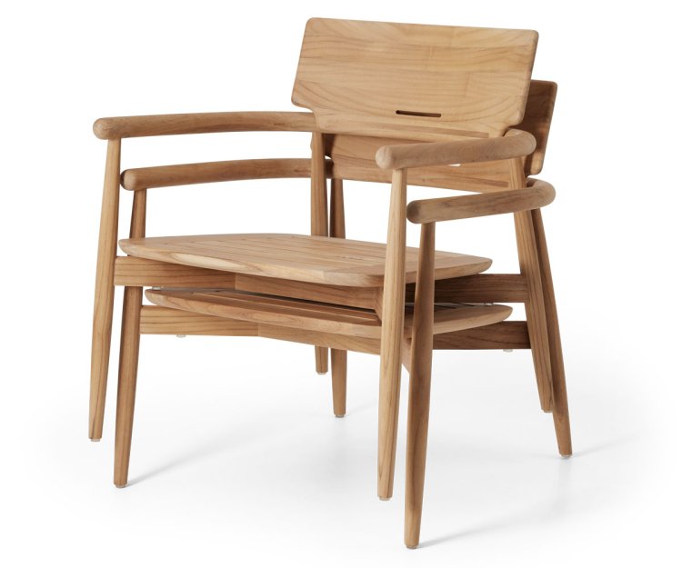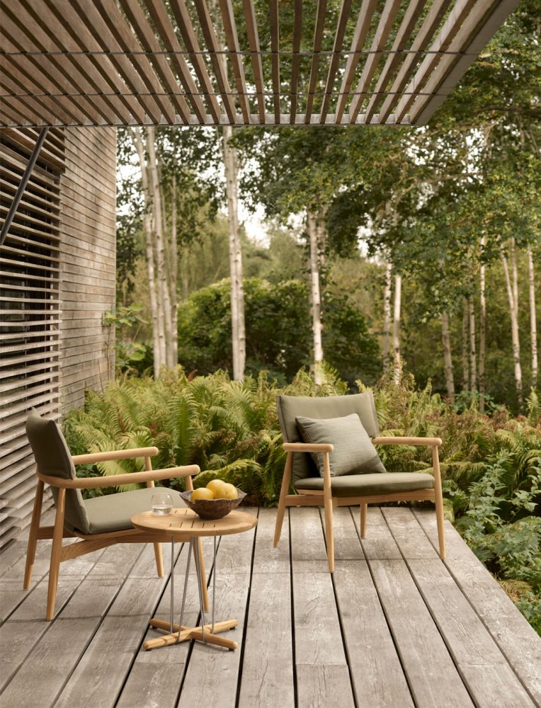 EO18 Embrace havestolen fra Carl Hansen & Søn er designet af EOOS og forener indendørs komfort med udendørslivets afslappede atmosfære. Designet af EOOS udforsker samspillet mellem perfektion og ufuldkommenhed gennem kontrastfulde materialer og introducerer en ny typologi for udendørsmøbler, hvor komfort og fleksibilitet bringes med ud.
