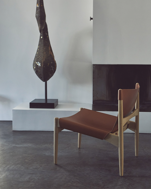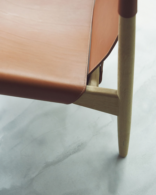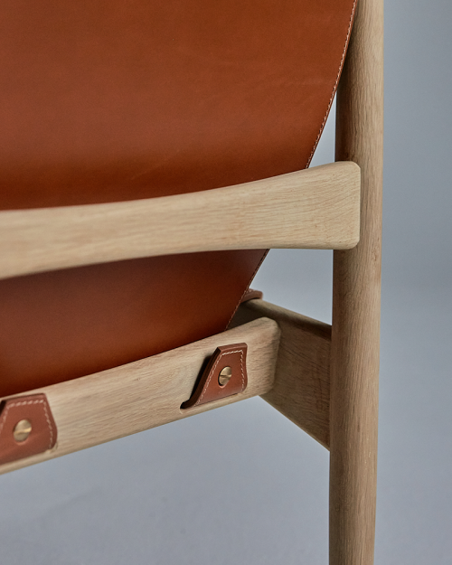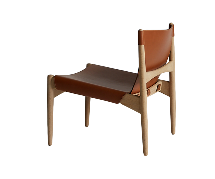 SJ68 Buck Lounge stolen blev oprindeligt designet af Erik Buck i 1955 for R. Skovgaard Jensen. Et råt og sofistikeret møbel med sin eget formsprog. Buck loungestolen kombinerer safari-lignende stole med den karakteristiske fine skandinaviske designtradition. En elegant stol med et enkelt, men alligevel distinkt udtryk. Et perfekt raffineret egestel med kun to stykker tykt skåret læder monteret på bagsiden med 3 tydeligt synlige kraftige messingskruer som en del af designet. Lædersædet er foldet rundt om siderne og spændt med 3 50mm messing seler. Skarp og blød på samme tid.