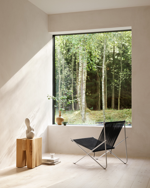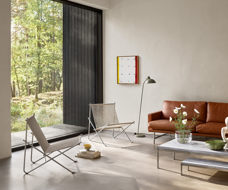 Poul Kjærholms PK4™ er en moderne, afslappet loungestol, der udstråler hans karakteristiske elegance gennem et let, minimalistisk udtryk i stål og flagline. Stolen afspejler Kjærholms visionære tilgang, hvor kunst og design krydser hinanden. Lænestolen blev designet i 1952 oprindeligt lavet som et begrænset oplag til familie og venner. PK4™ loungestolen består af to materialer - et ubrudt flagline og syv stålrørstykker svejset i en samlet ramme. PK4 fås i tre konfigurationer: Sort pulverlakeret stål med flagline i natur,  Rustfrit stål med flagline i natur eller rustfrit stål med sort flagline. Loungestolen kan også bestilles med løs sædepude for ekstra komfort. Disse kommer i: Naturligt lærred, Sort lærred og Sort læder. Puder kan ikke købes separat.