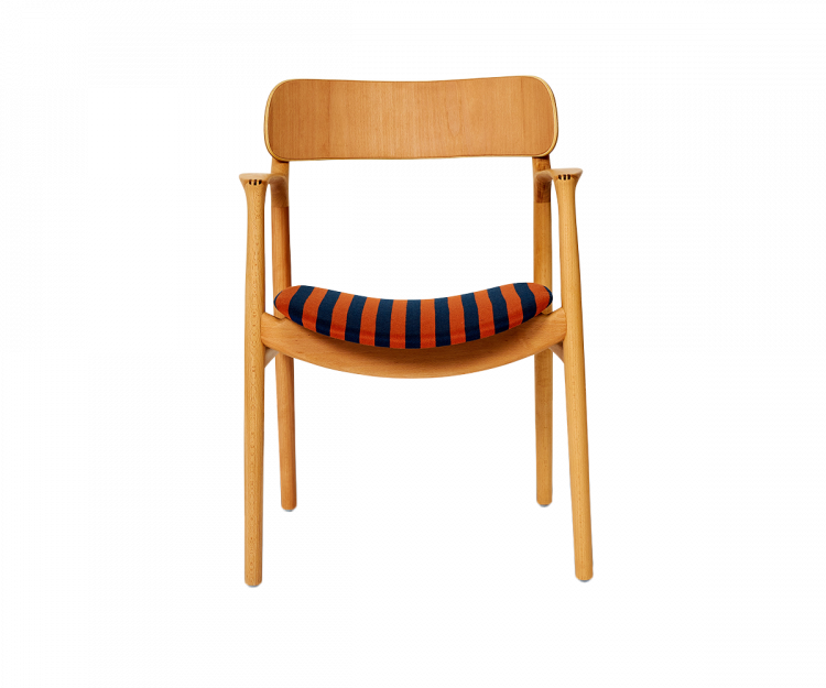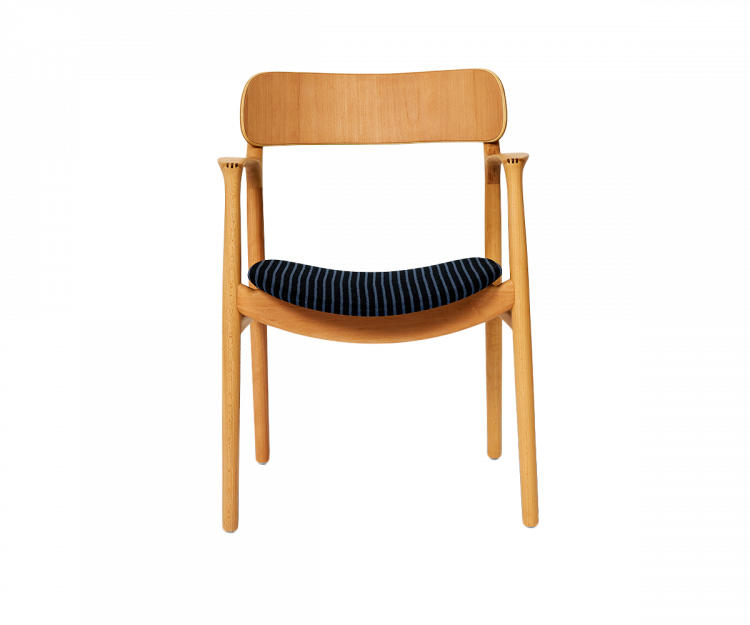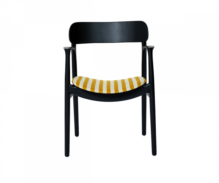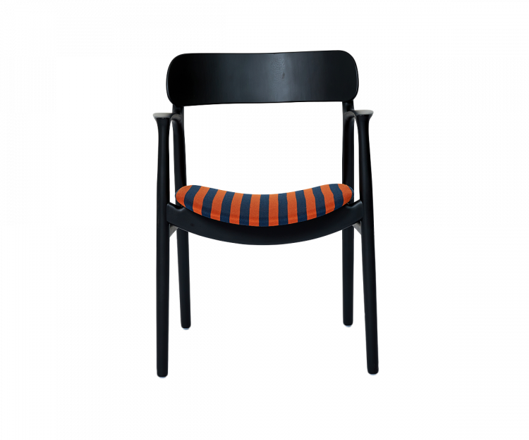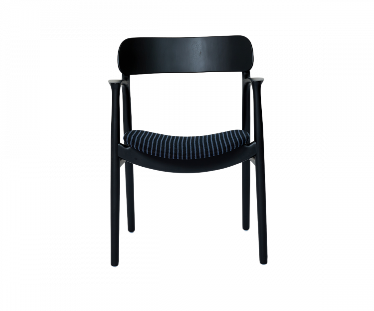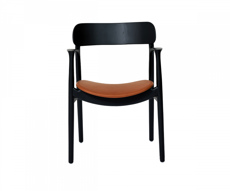 Stolen fås i tre varianter: eg, bøg og sort. Alle varianter tilbydes med eller uden polstret sæde. Vælg mellem betræk i klassisk læder eller stof fra danske Kjellerup Væveri.