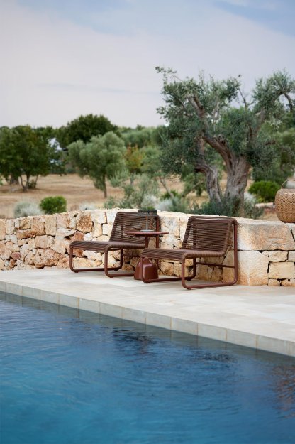 Al Dente loungestolen fås i elegante og rolige farver, der passer smukt ind i mange typer uderum. Den naturlige farvetone giver stolen et eksklusivt og harmonisk udtryk, som fungerer godt sammen med både træ, sten og andre havemøbler.