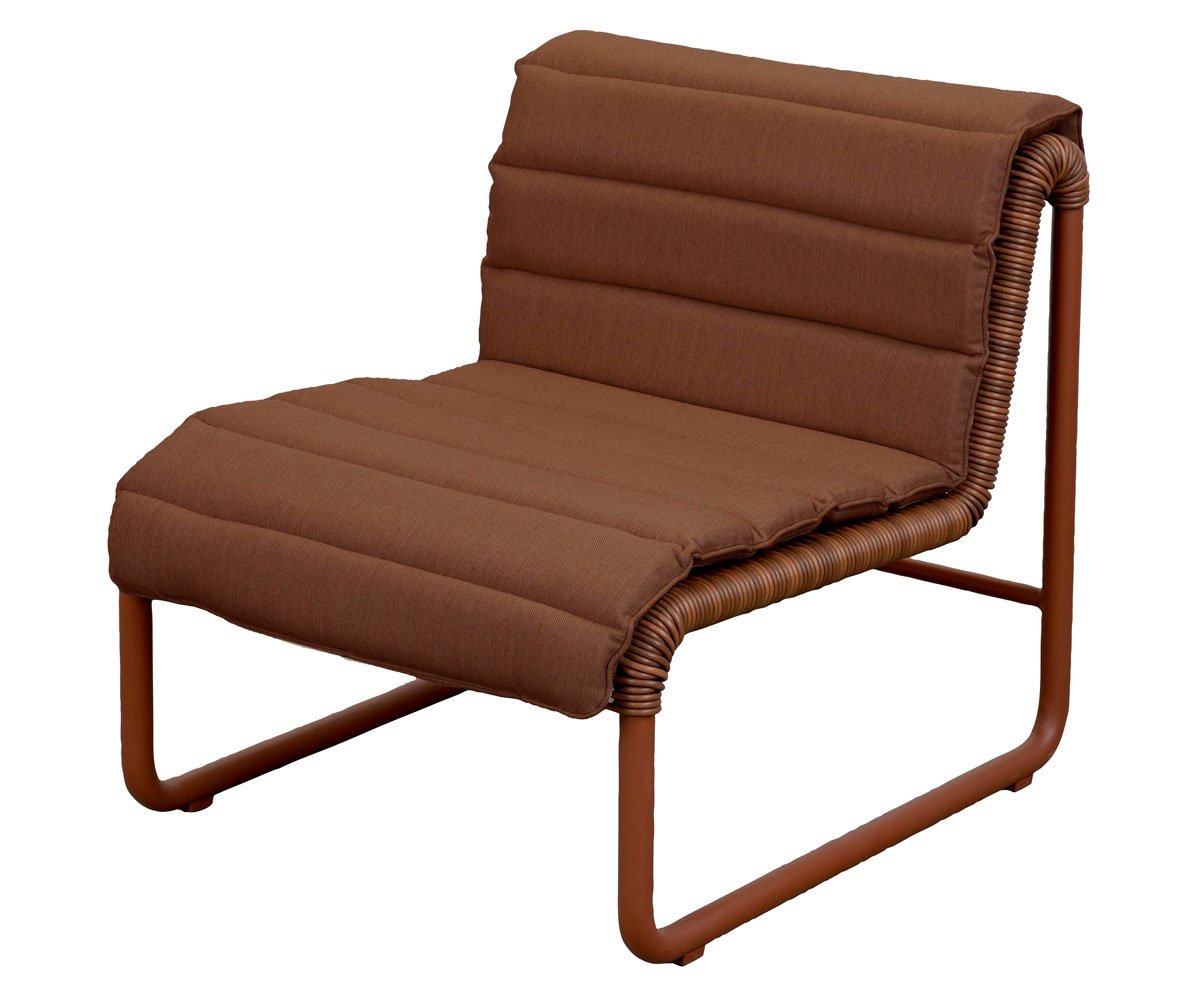Den håndflettede konstruktion er monteret på en stærk, pulverlakeret aluminiumsramme, der skaber en flot balance mellem lethed og stabilitet. Loungestolen kan desuden fuldendes med en skræddersyet Al Dente loungehynde, som giver ekstra komfort og et gennemført udtryk.
