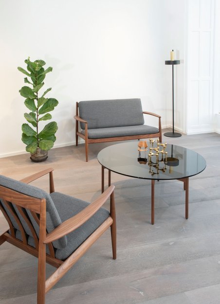GJ 118 2-personers sofa er et ikonisk møbel fra den danske designarv og et tidløst eksempel på nordisk modernisme. Denne Lange Production sofa er inspireret af Grete Jalks originale design fra slutningen af 1950’erne og kombinerer elegance, funktionalitet og høj kvalitet. Sofaen fra Lange Production har et stel i oliebehandlet europæisk eg eller amerikansk valnød og hynder betrukket med stof fra KVADRAT, hvilket giver både komfort og et stilrent udtryk.