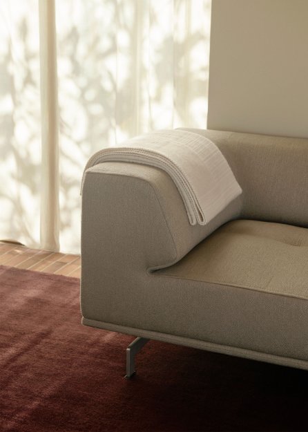 Sofaen er omhyggeligt håndpolstret og udført i materialer af højeste kvalitet, hvilket giver en handskeblød komfort og en fornemmelse af kompromisløst håndværk. Den karakteristiske ryg, formet af bløde kurver og skarpt definerede linjer, vidner om en ekspertise inden for polstring, som kun få møbler besidder. Delphi kan stå smukt alene eller kombineres med moduler fra Delphi Elements-serien for en mere fleksibel indretning.
