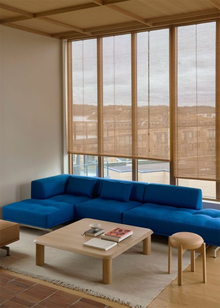 Med Delphi Elements udvider Fredericia Furniture Hannes Wettsteins ikoniske designunivers med endnu større fleksibilitet og komfort. Denne version af Delphi Elements med open end og chaiselong forener denne konfiguration et skulpturelt formsprog med en afslappet elegance, der naturligt samler rummet og inviterer til både hvile og samvær.
