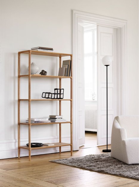 Denne version er den høje variant, Root Tower shelf, som både passer smukt ind i din dagligstue, kontor, køkken alrum eller hvor, du ønsker en smuk reol.