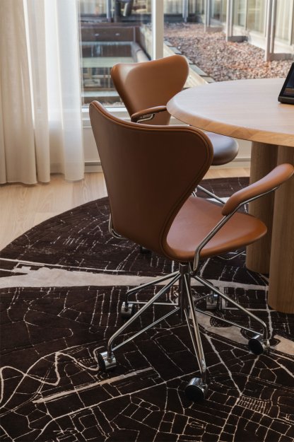 Med Fritz Hansens Syver kontorstol får du ikke blot en kontorstol – du får et stykke dansk designhistorie, hvor Arne Jacobsens vision om funktionalitet og elegance smelter sammen i en klassiker, der aldrig går af mode.