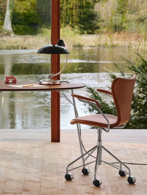 Fritz Hansen 3217 Serie 7™ er en brugevenlig kontorstol, der har hjul, armlæn og er justerbar i højden, så du let kan tilpasse stolen efter dit behov. Med denne designerkontorstol får du en ergonomisk kontorstol, der forener komfort, holdbarhed og æstetik.