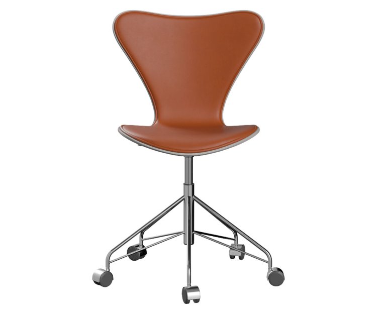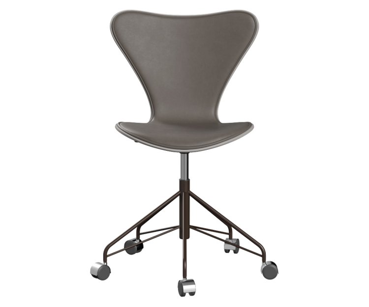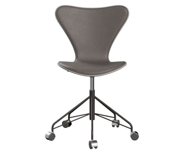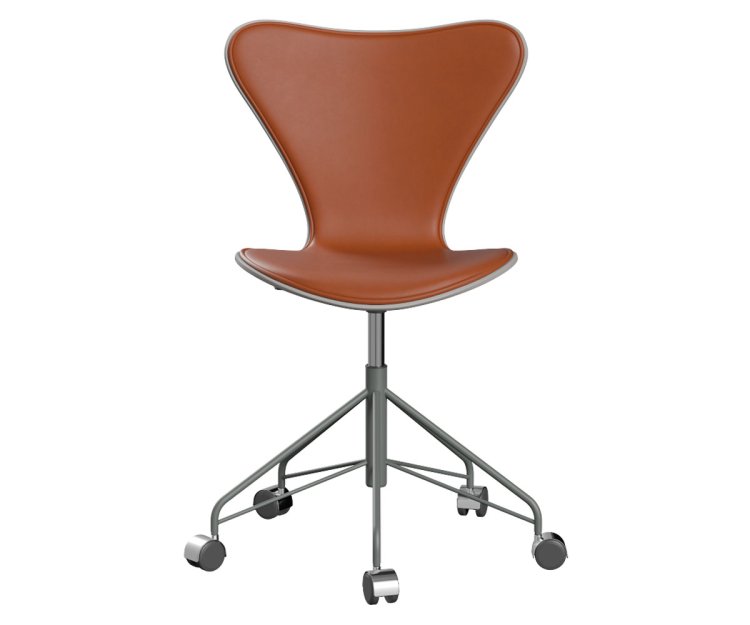 3117 kontorstolen med forsidepolstring i læder kombinerer den klassiske Serie 7™ form med funktionelle detaljer til arbejdspladsen. Den elegante, formpressede finérskal er polstret på forsiden med eksklusivt Essential læder, som giver øget komfort og et raffineret udtryk, mens bagsiden fremstår i den ikoniske finer.