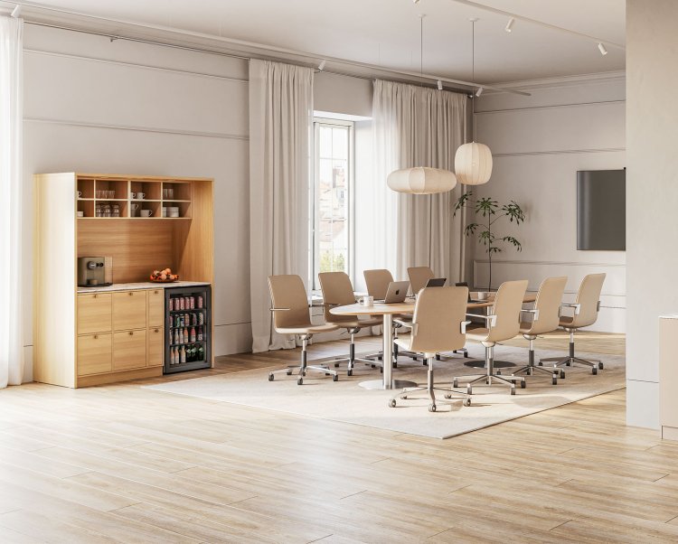 Baristaskabet til arbejdspladsen er et stilrent erhvervsmøbel fra Cube Design, som kombinerer moderne design med fokus på bæredygtighed. Den danske møbelvirksomhed har en klar vision om at udvikle erhvervsmøbler i høj kvalitet med respekt for miljøet. Derfor ønsker Cube Design udelukkende at anvende FSC-certificerede materialer – i 2024 var 99 % af alt det træ, Cube Design anvendte, FSC-certificeret.