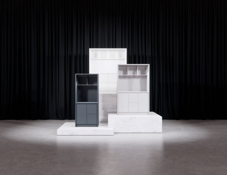 Hos Rosborg Møbler kan du få kaffestationen kombineret med Quadro opbevaring. Du kan vælge mellem en løsning med fire væghængte reoler og 2 x Quadro Reoler med to låger og seks skuffer – eller med 2 x Quadro Reoler uden låger. Kaffestationen fra Cube Design fås desuden i disse varianter: