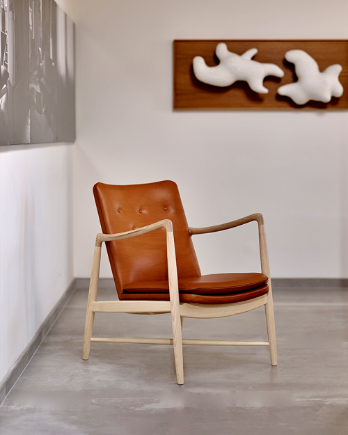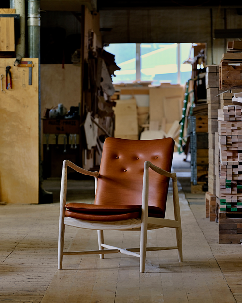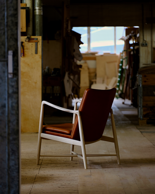 Kaminstolens design og komfort gør den til en ægte Finn Juhl-klassiker. Stolen lanceres i FSC certificeret ask og læder, men vil også kunne fås i eg og valnød med en række forskellige polstringer - kontakt os for mere info.