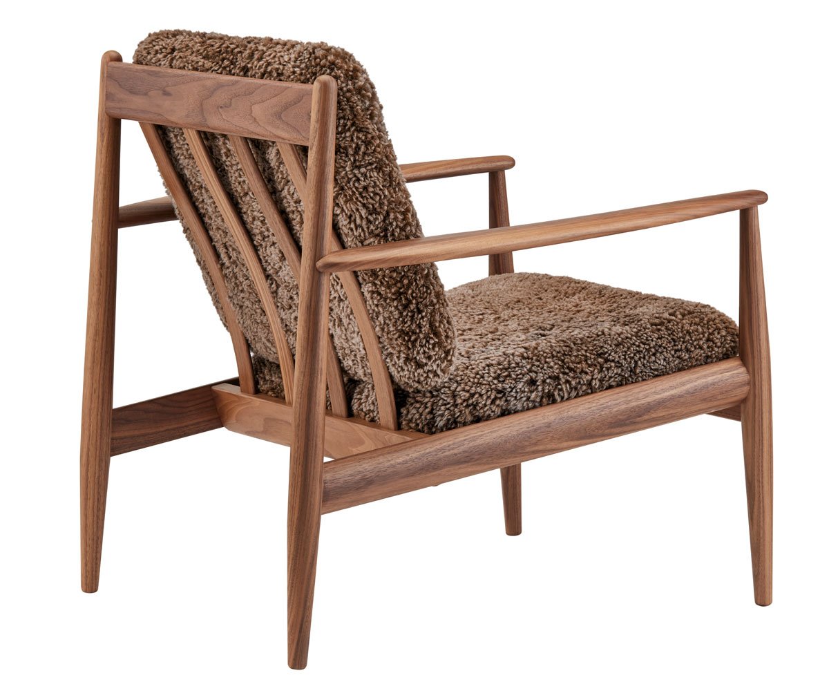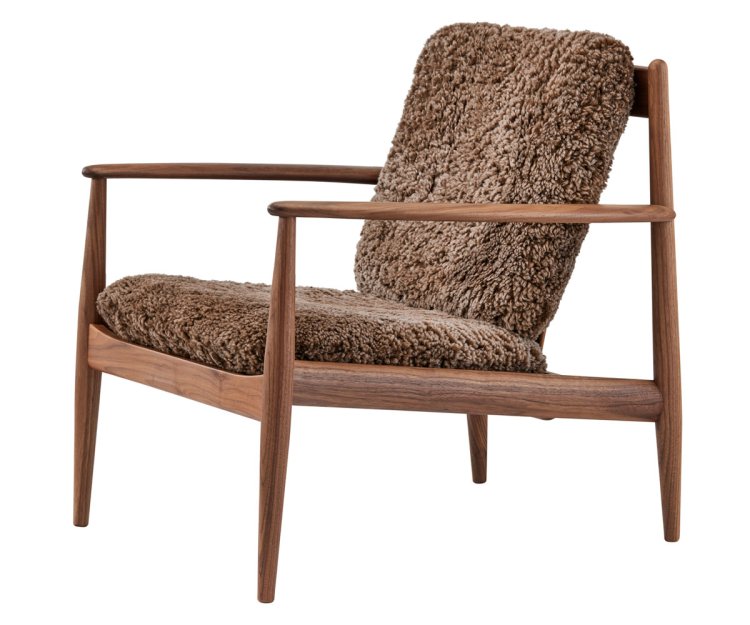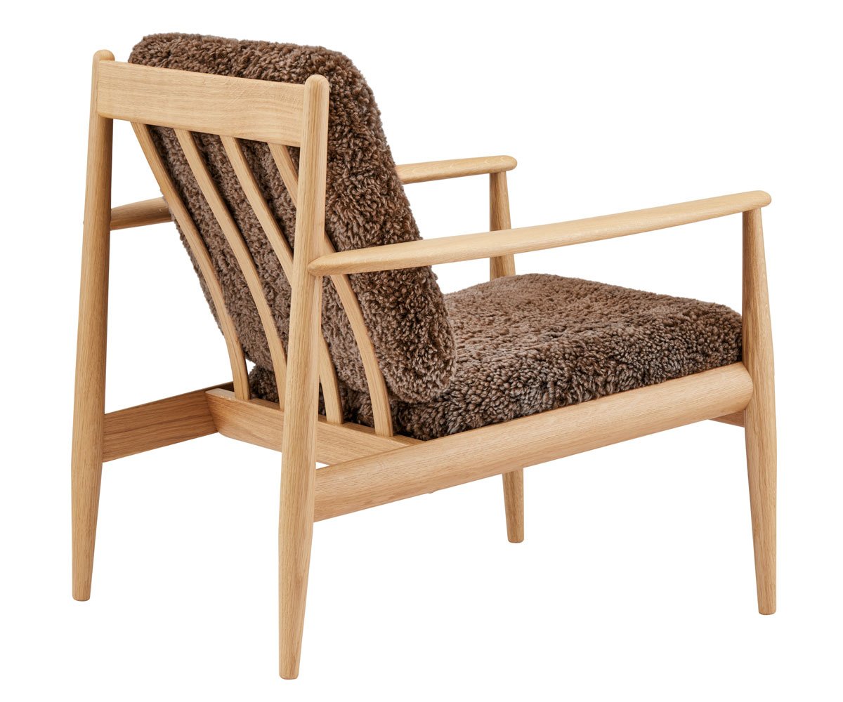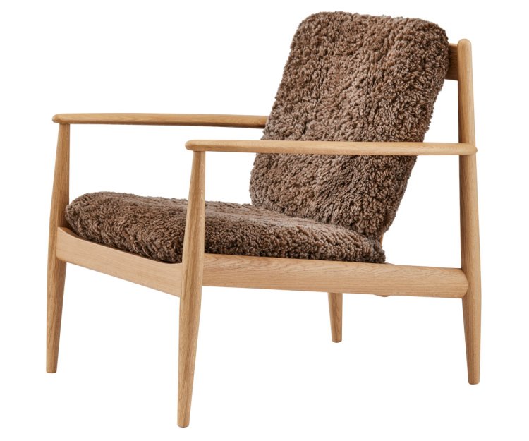 Denne elegante lænestol fra Lange Production fås i eg eller valnød, hvilket giver GJ 118 Easy Chair et varmt og naturligt udtryk. Lænestolens bløde hynder sikrer dig høj siddekomfort, når du skal slappe af. Hynderne fås i fåreskind eller tekstilet Fiord Range fra Kvadrat.