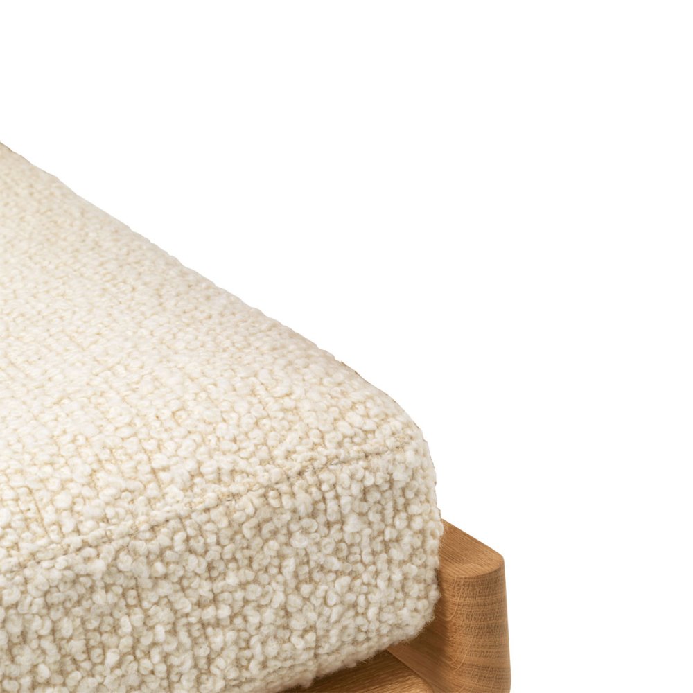 Den FSC™-certificerede ramme i massiv eg fremviser de samme strenge tømrerdetaljer og dynamiske linjer som stolene i CH290-serien. Den polstrede hynde med aftageligt stofbetræk tilfører et blødt, indbydende udtryk, der balancerer træets styrke med komfortens lethed.