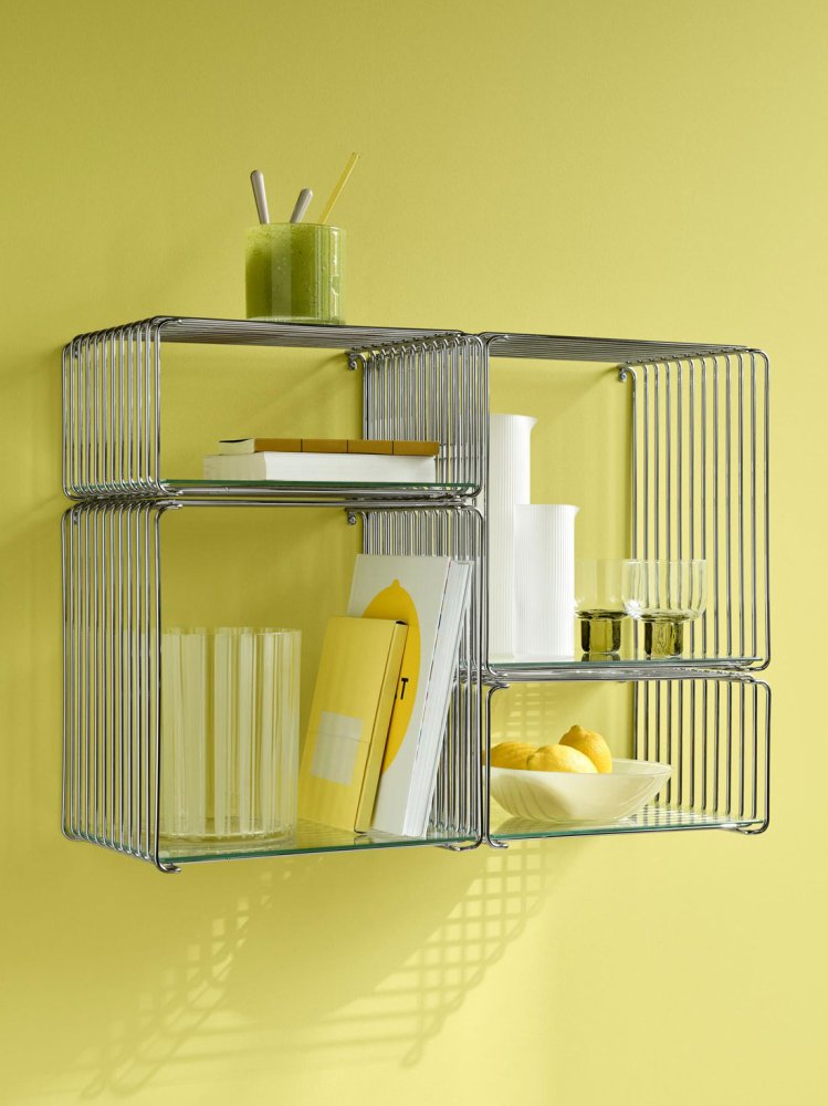Panton Wire er et modulært system, der giver dig frihed til at sammensætte din egen løsning. Kombinér flere moduler på væggen, på gulvet eller som rumdeler i et åbent rum. Du kan tilføje hylder eller topplader og skabe en personlig opstilling, der matcher både dine behov og din stil.