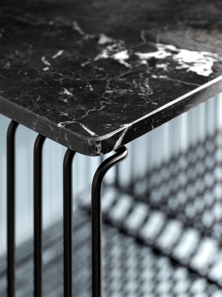 Toppladen fås i ægte italiensk marmor. Det er et naturmateriale dannet over millioner af år under høj temperatur og tryk. Hver topplade er unik med farve og struktur, som giver din Panton Wire et personligt præg. Toppladen tilbydes i både sort og hvid marmor, hvor den glatte, elegante overflade skaber en smuk kontrast til trådreolens forkromede stål og transparente design.